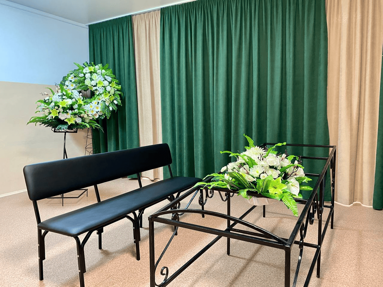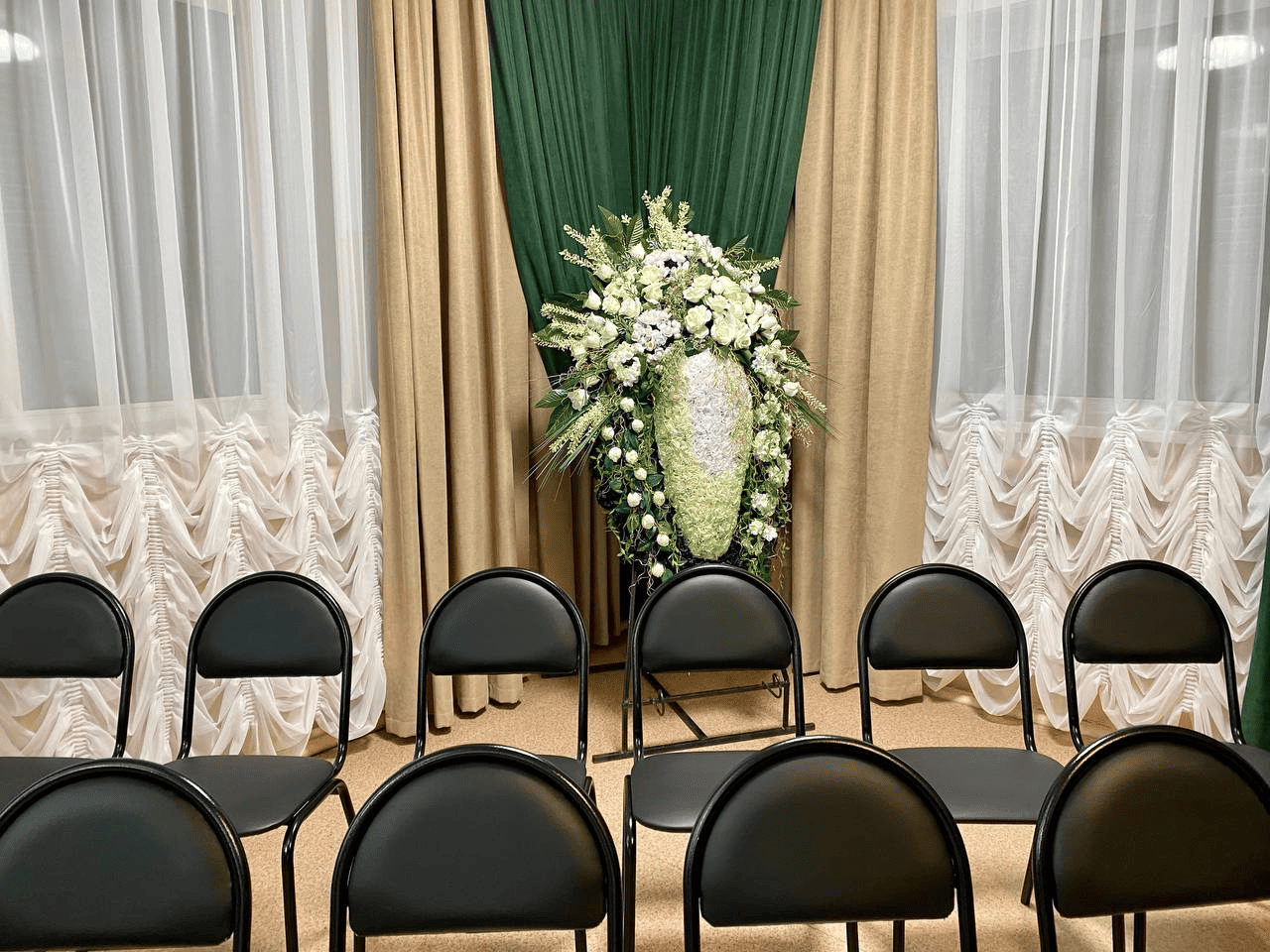 Для проведения траурной церемонии здесь предусмотрено все необходимое: постамент для гроба, 27 посадочных мест, вазы для живых цветов, подставка для венков и портретов,